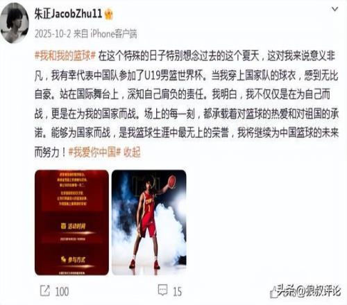 轰下18分6板率队夺冠!国青混血小将朱正社媒晒入选最佳一阵
